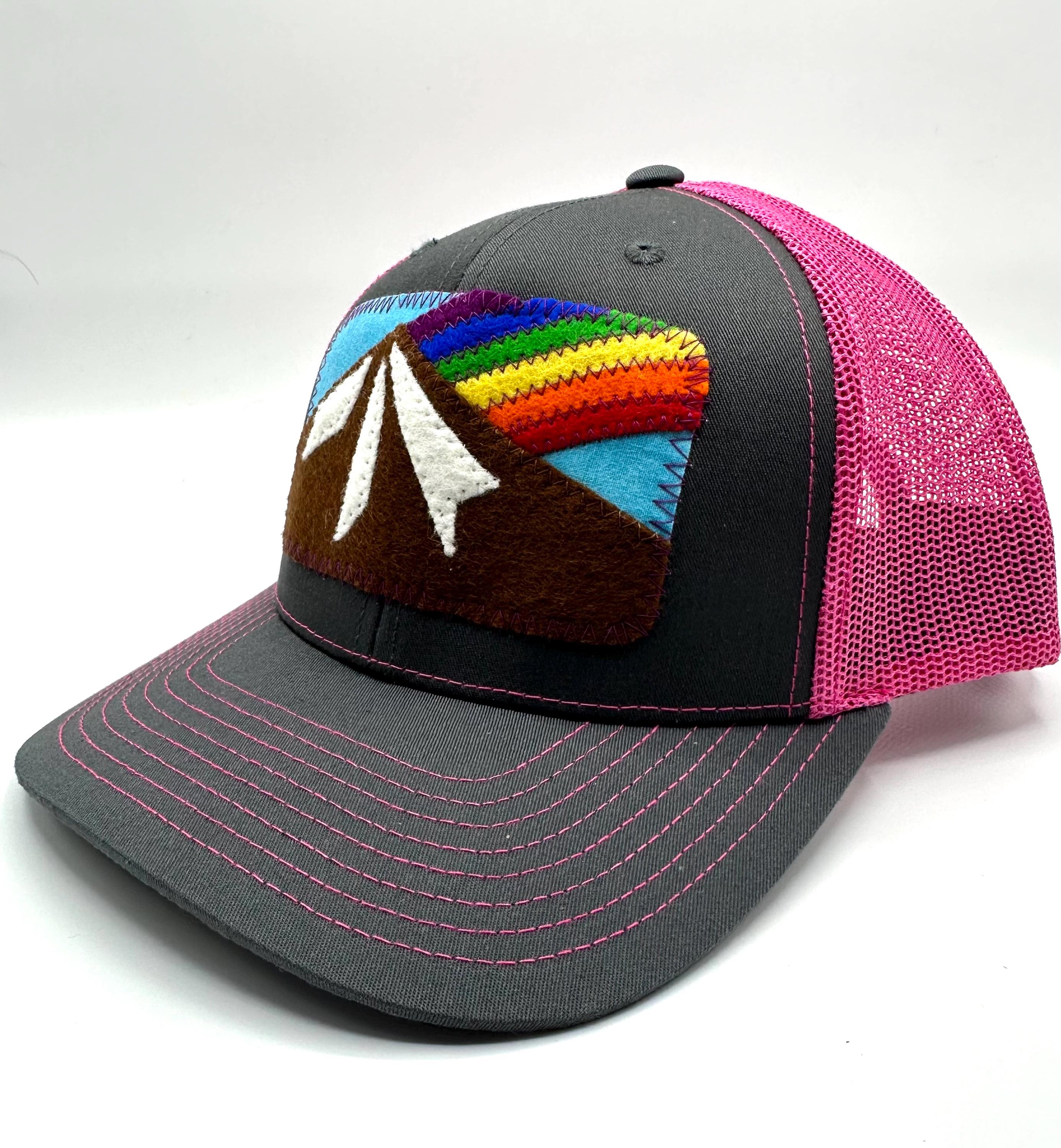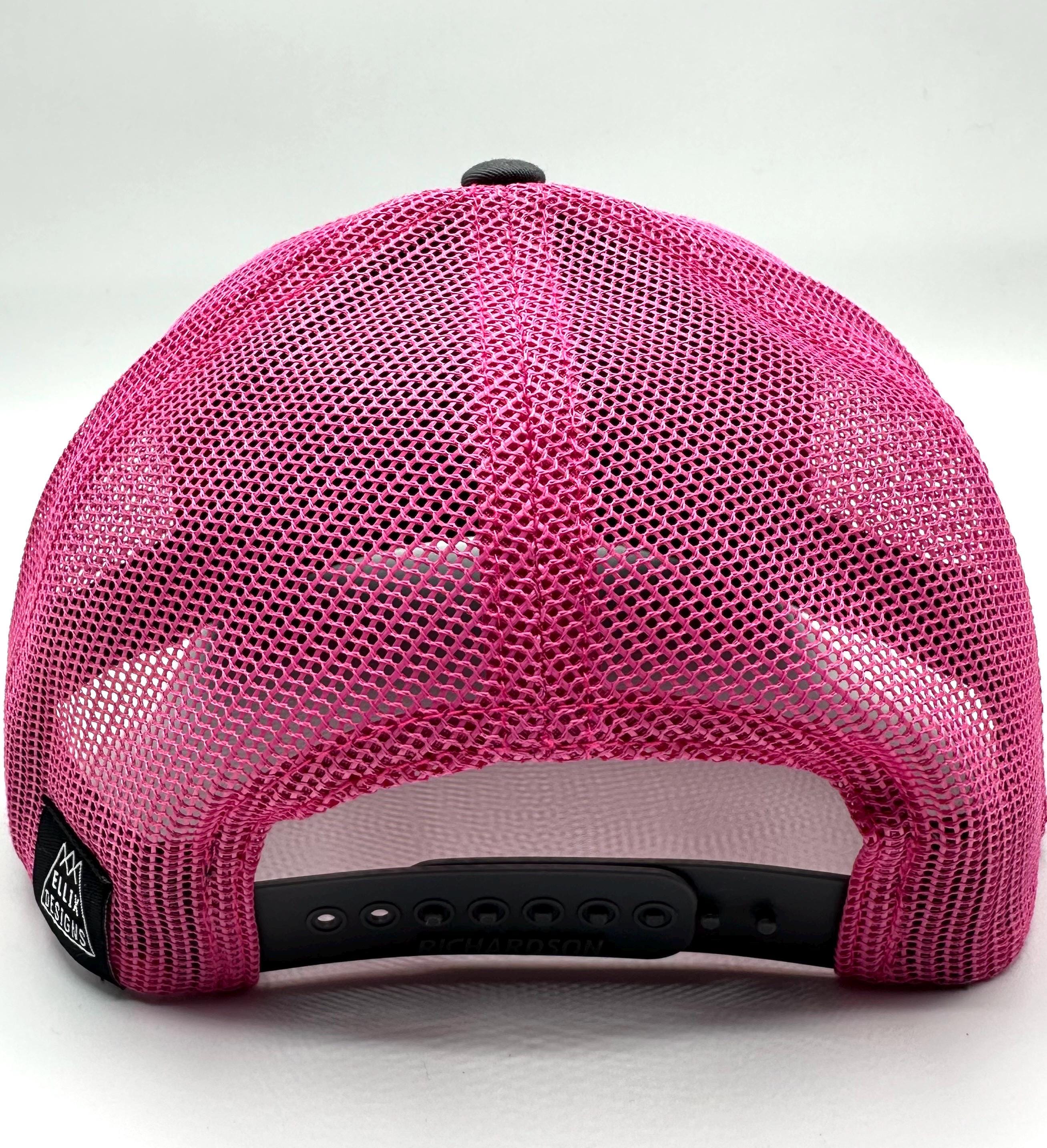 Ellix hats are a great way to look stylish while shading your face & protecting your head - from the mountain sun, the festival flare or the urban glow. Trucker hats are all-season apparel here in the mountains of Bend, Oregon - perfect for men and women, and this pink and gray Richardson cotton front hat has a one-size-fits-most adjustable snapback.