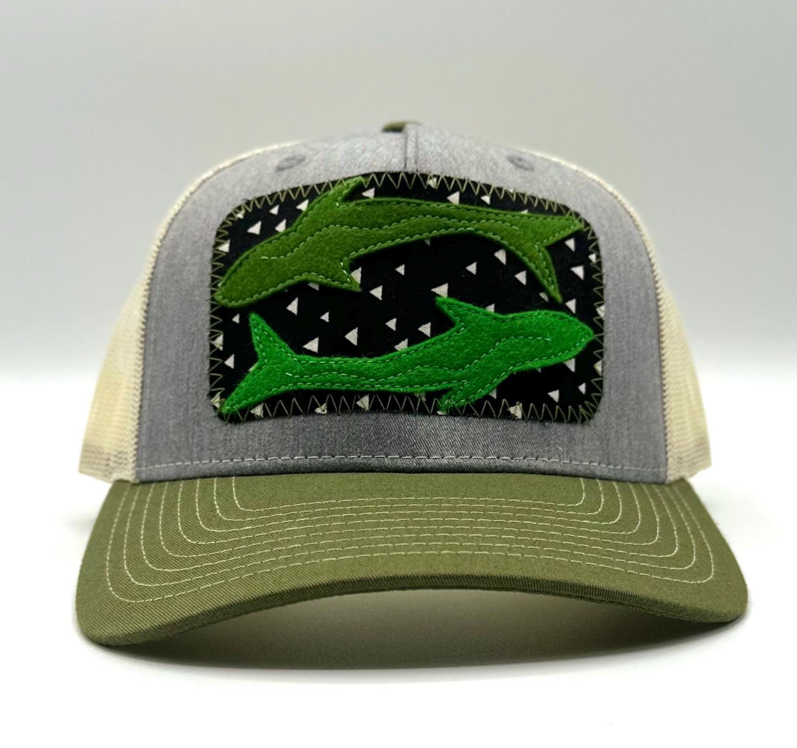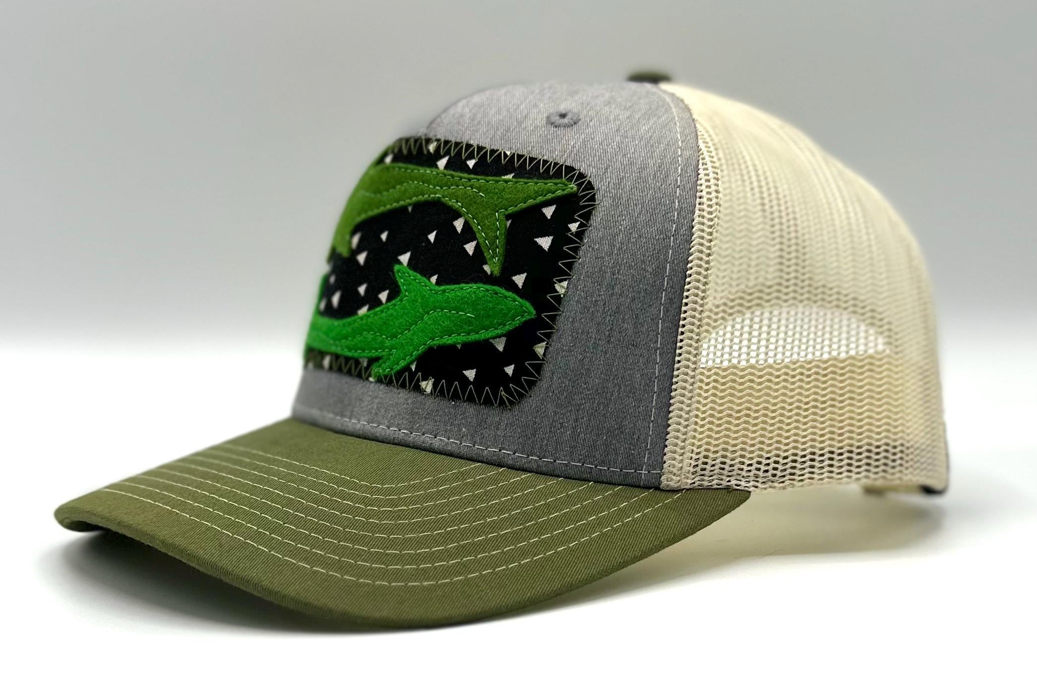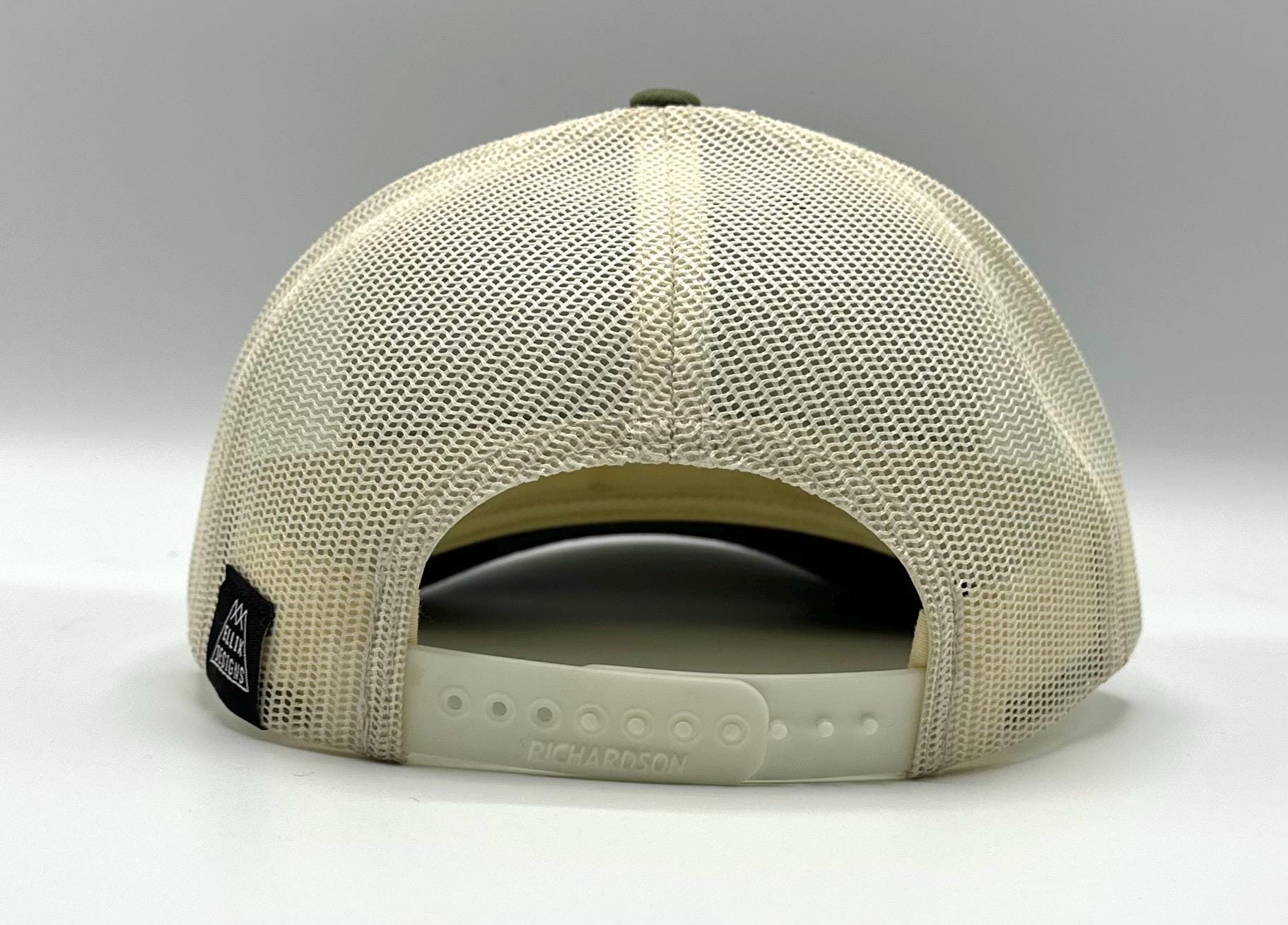 Ellix hats are a great way to look stylish while shading your face & protecting your head - from the mountain sun, the festival flare or the urban glow. Trucker hats are all-season apparel here in the mountains of Bend, Oregon - perfect for men and women, and this olive, gray and off white Richardson cotton front hat has a one-size-fits-most adjustable snapback.