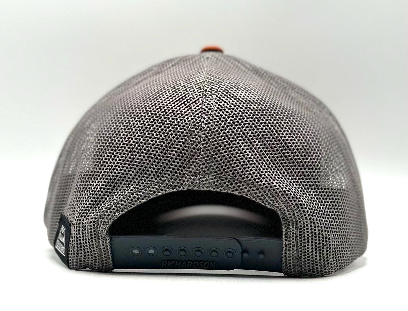 Ellix hats are a great way to look stylish while shading your face & protecting your head - from the mountain sun, the festival flare or the urban glow. Trucker hats are all-season apparel here in the mountains of Bend, Oregon - perfect for men and women, and this rusty brown and gray Richardson cotton front hat has a one-size-fits-most adjustable snapback.
