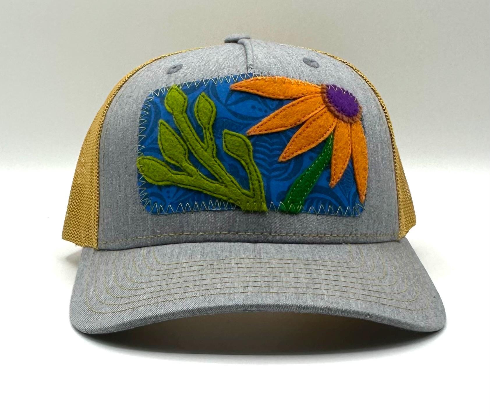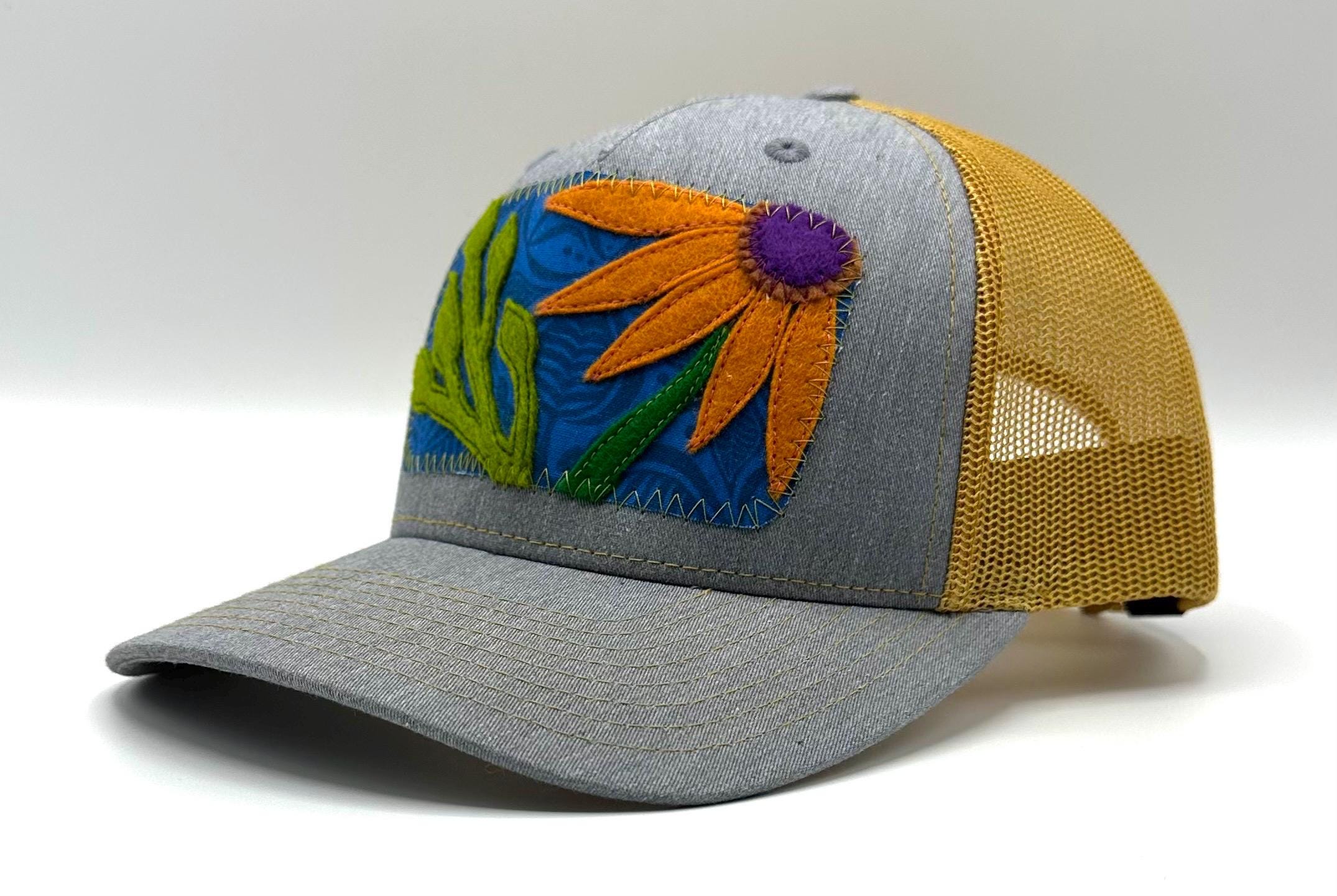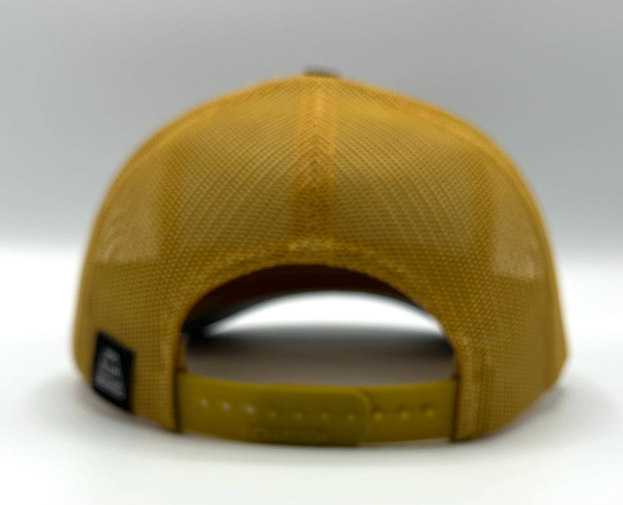 Ellix hats are a great way to look stylish while shading your face & protecting your head - from the mountain sun, the festival flare or the urban glow. Trucker hats are all-season apparel here in the mountains of Bend, Oregon - perfect for men and women, and this golden yellow and gray Richardson cotton front hat has a one-size-fits-most adjustable snapback.