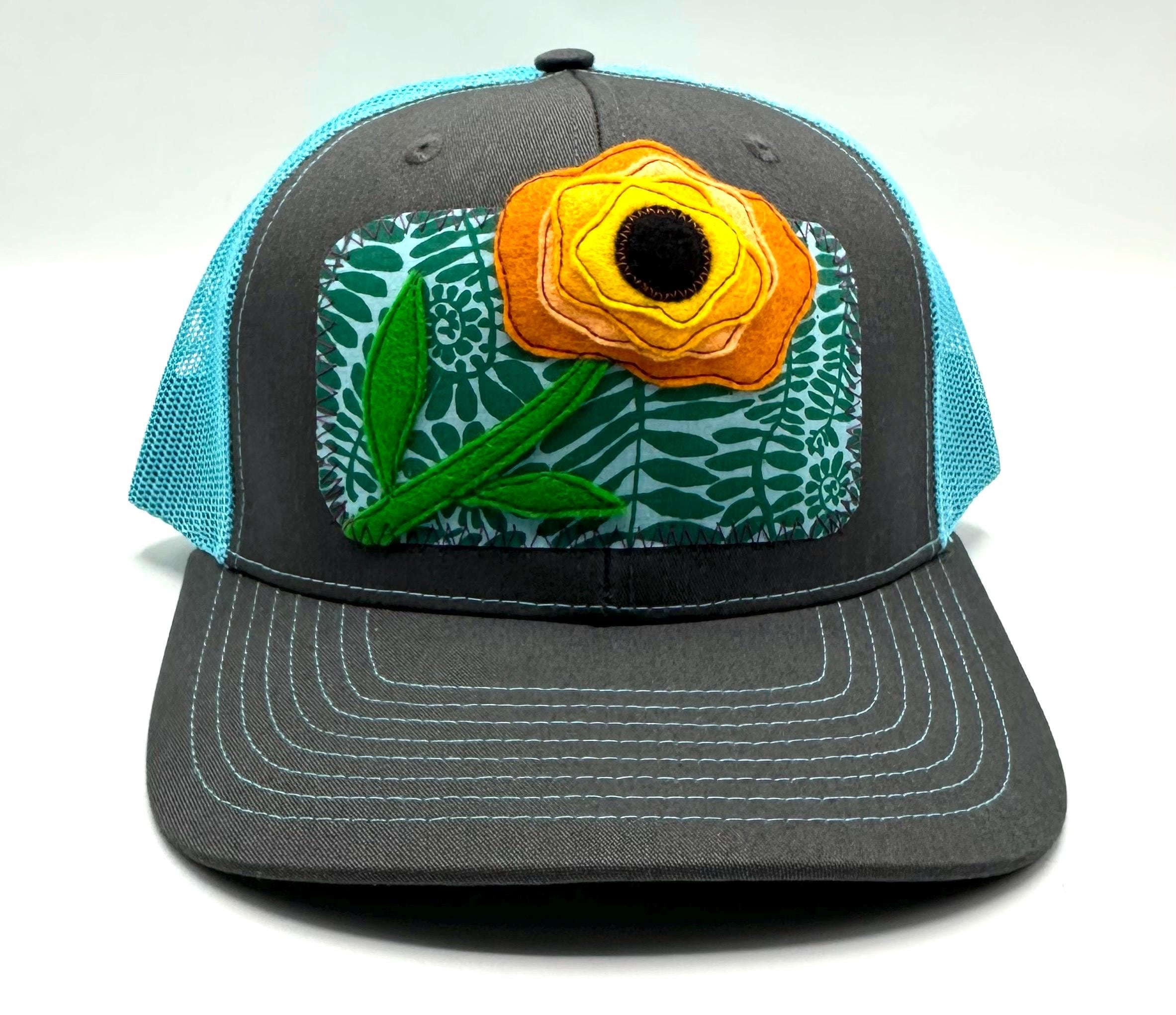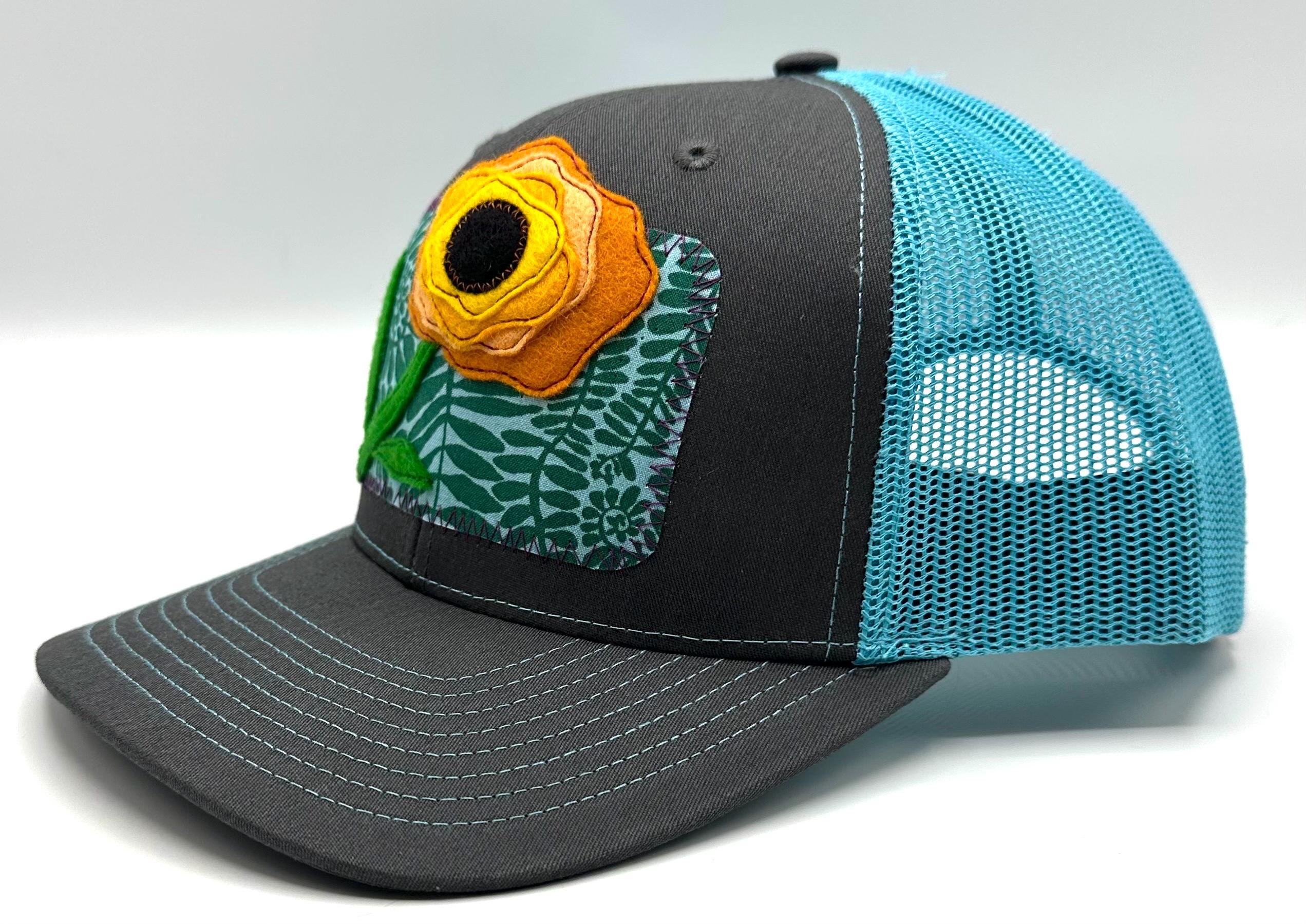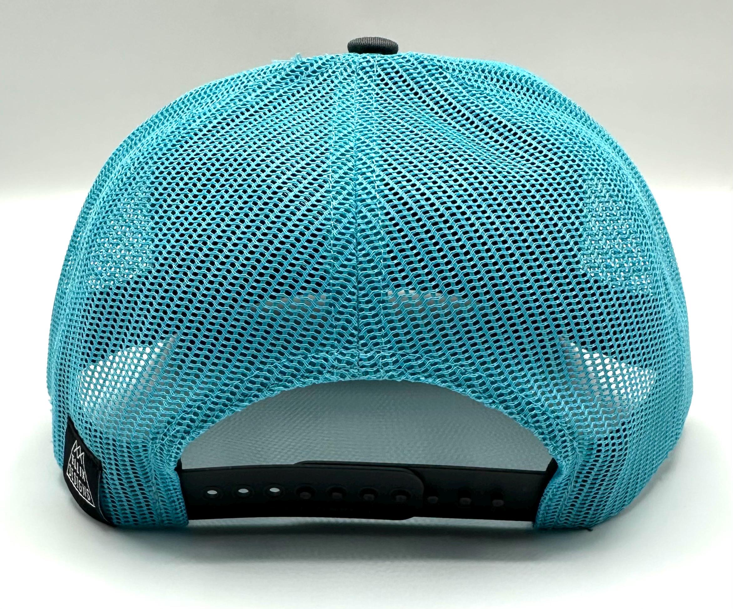 Ellix hats are a great way to look stylish while shading your face & protecting your head - from the mountain sun, the festival flare or the urban glow. Trucker hats are all-season apparel here in the mountains of Bend, Oregon - perfect for men and women, and this turquoise and gray Richardson cotton front hat has a one-size-fits-most adjustable snapback.