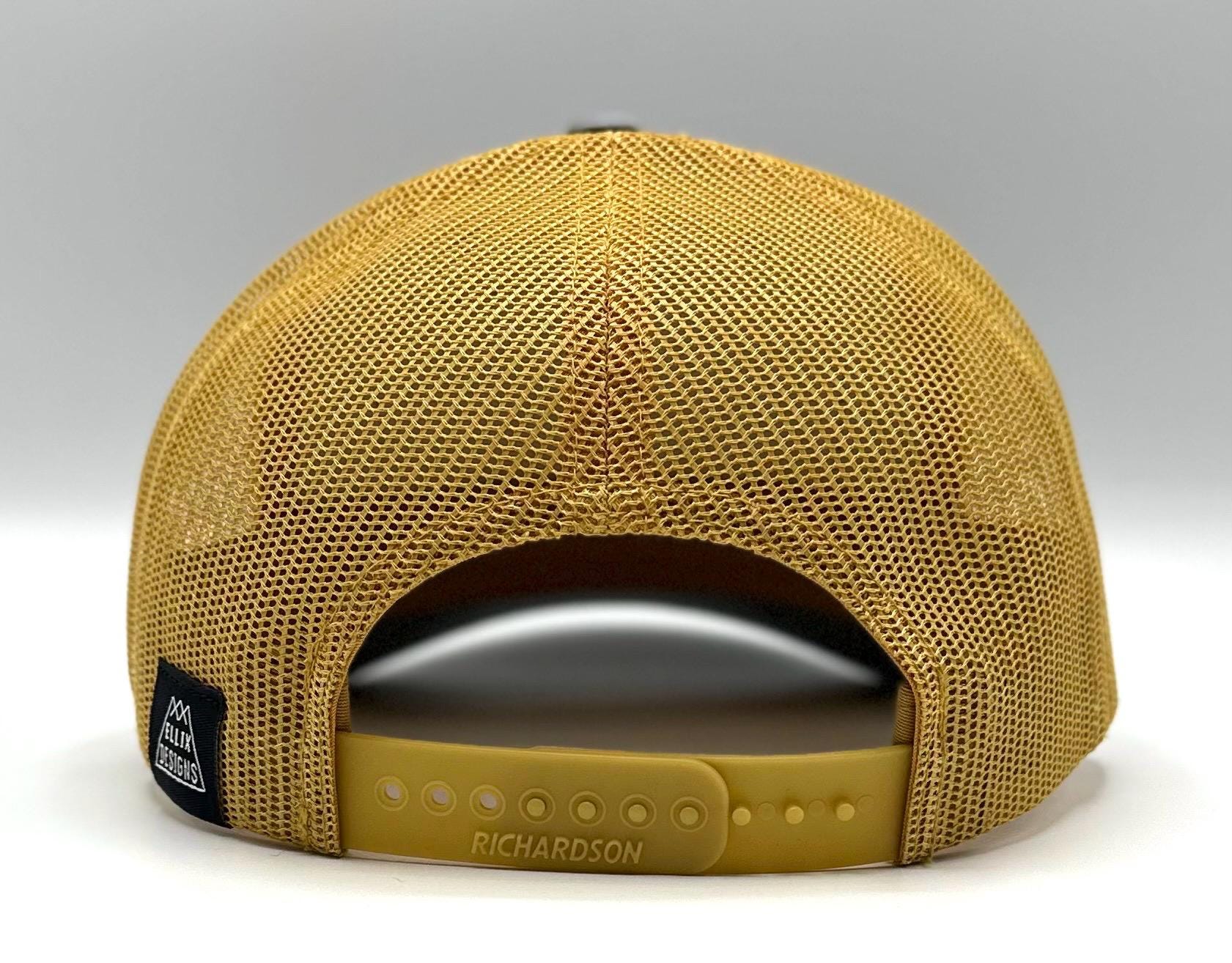 Ellix hats are a great way to look stylish while shading your face & protecting your head - from the mountain sun, the festival flare or the urban glow. Trucker hats are all-season apparel here in the mountains of Bend, Oregon - perfect for men and women, and this golden yellow and gray Richardson cotton front hat has a one-size-fits-most adjustable snapback.