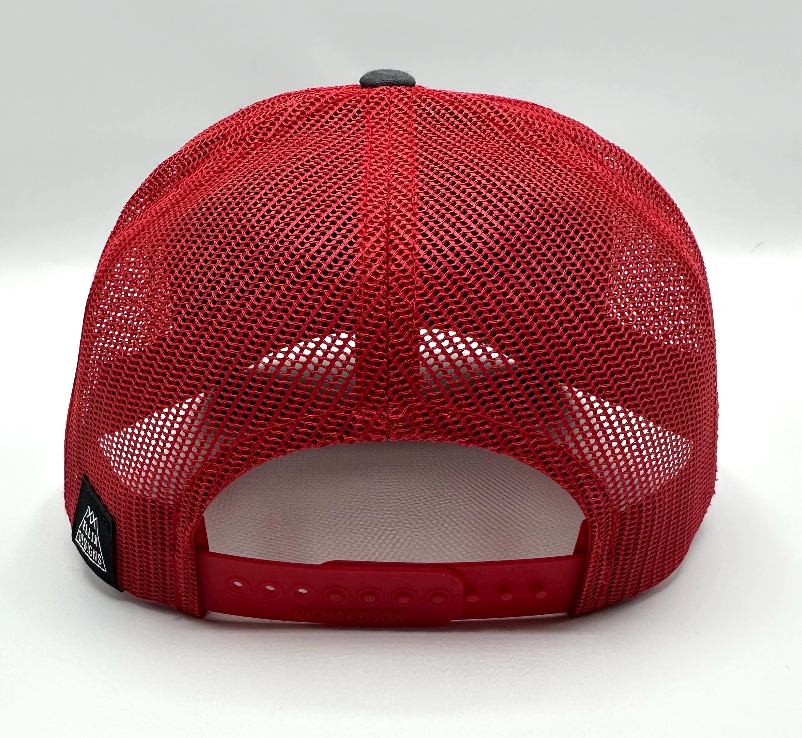 Ellix hats are a great way to look stylish while shading your face & protecting your head - from the mountain sun, the festival flare or the urban glow. Trucker hats are all-season apparel here in the mountains of Bend, Oregon - perfect for men and women, and this red and gray Richardson cotton front hat has a one-size-fits-most adjustable snapback.
