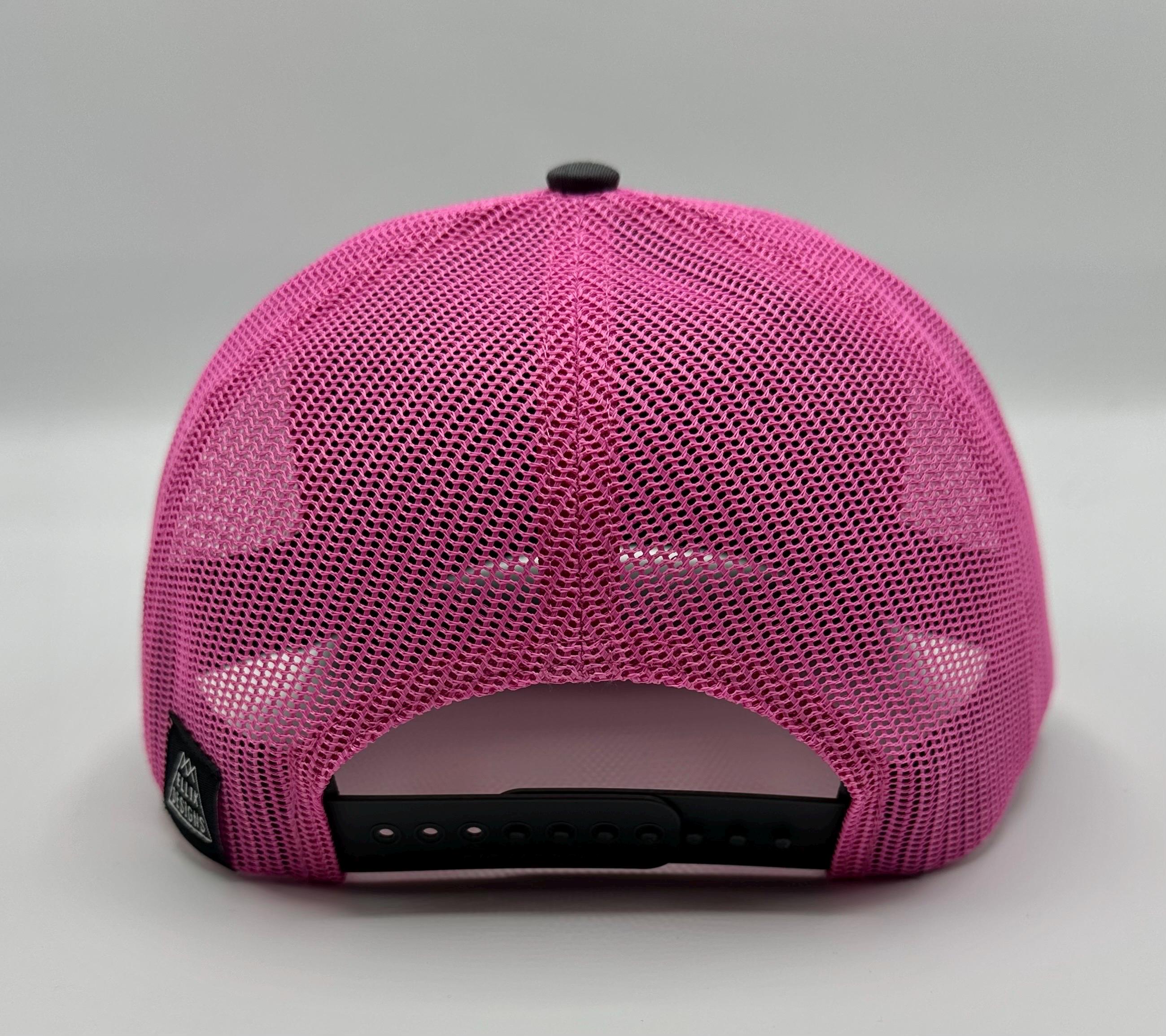 Ellix hats are a great way to look stylish while shading your face & protecting your head - from the mountain sun, the festival flare or the urban glow. Trucker hats are all-season apparel here in the mountains of Bend, Oregon - perfect for men and women, and this pink and gray Richardson cotton front hat has a one-size-fits-most adjustable snapback.