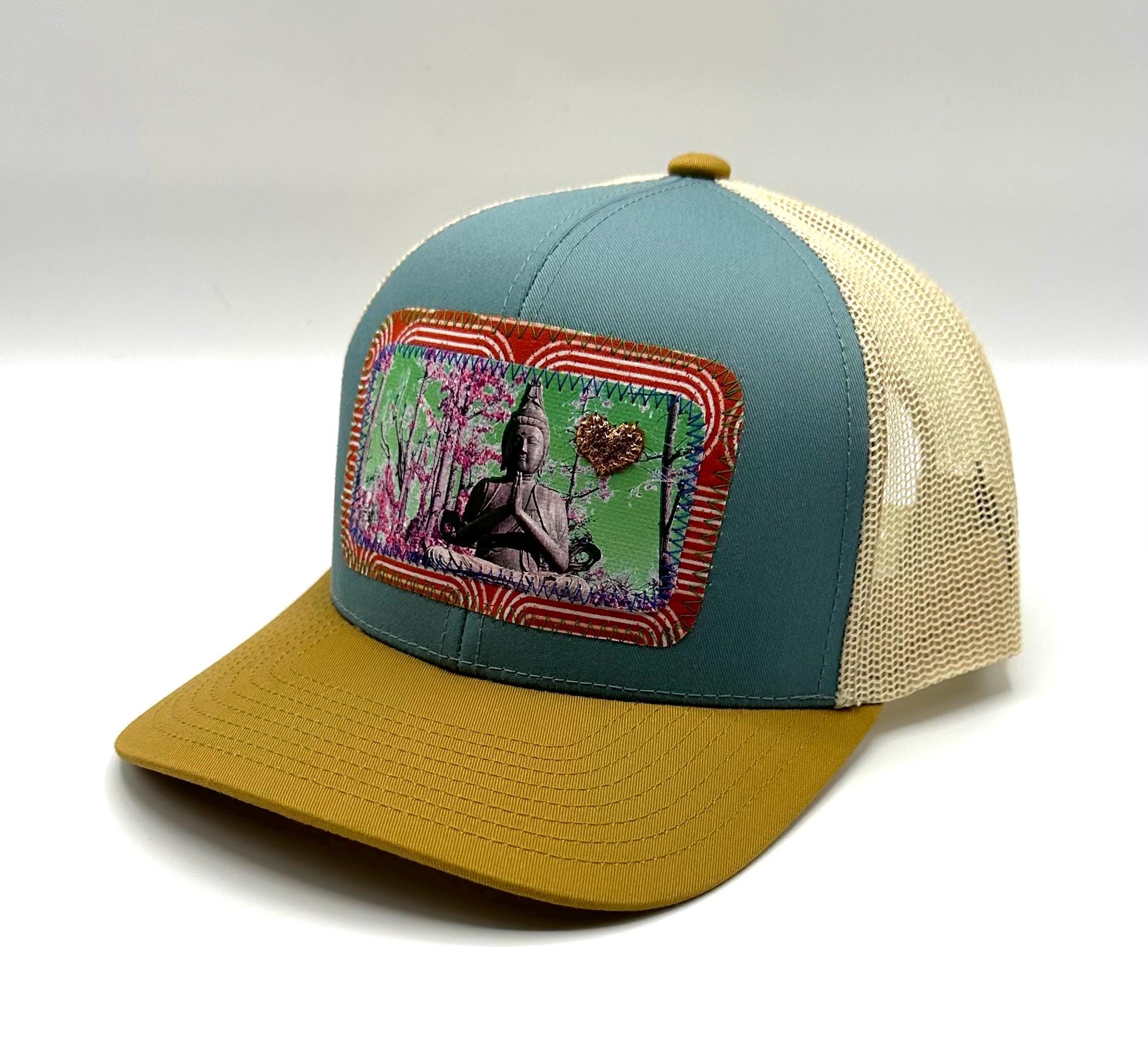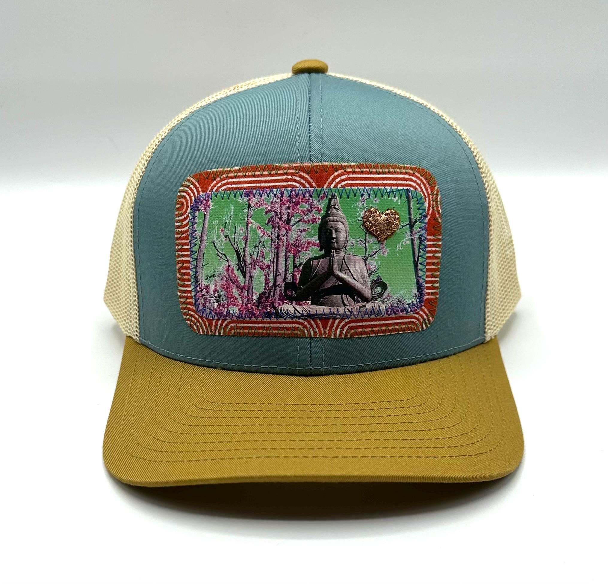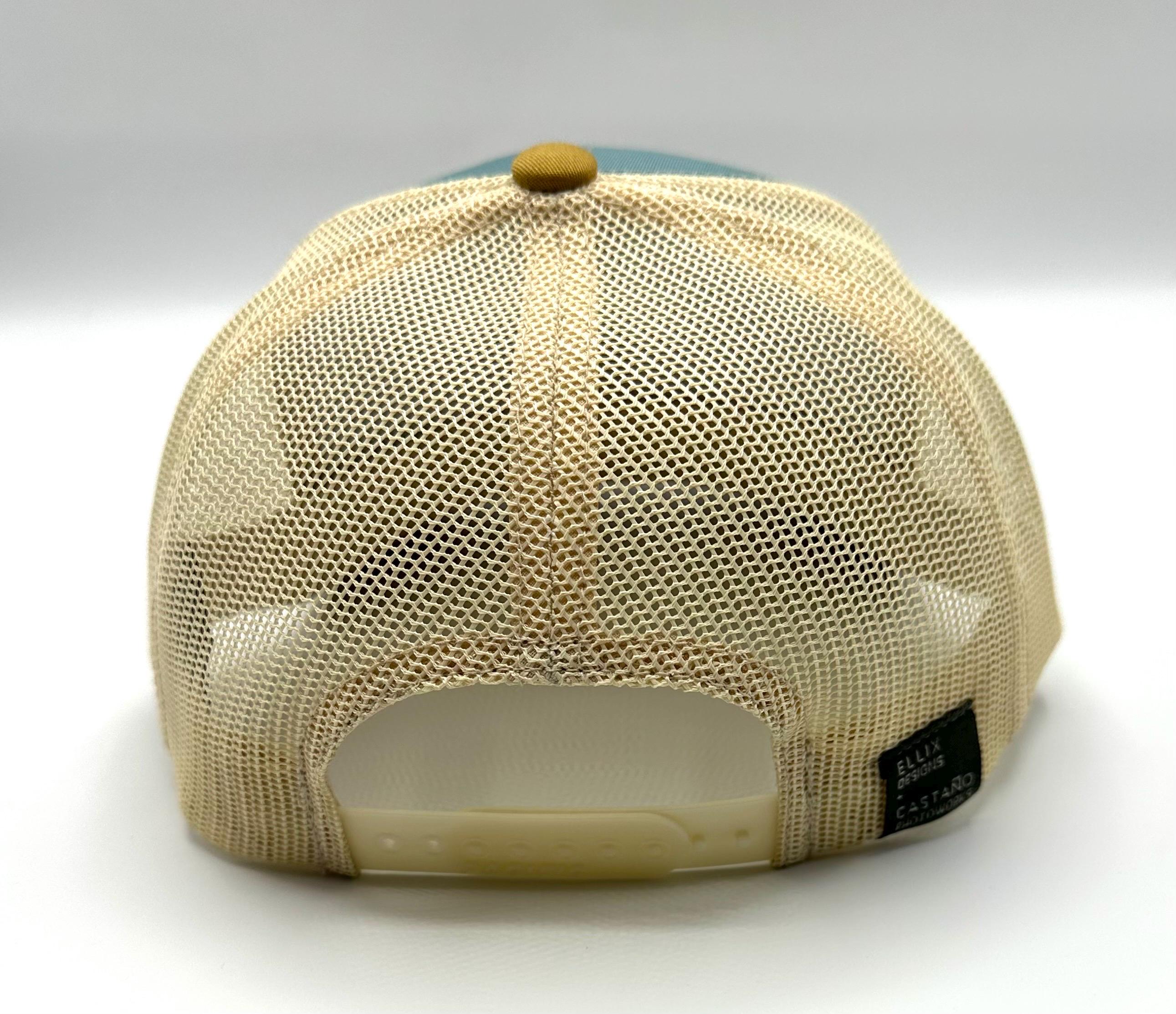 Ellix hats are a great way to look stylish while shading your face & protecting your head - from the mountain sun, the festival flare or the urban glow. Trucker hats are all-season apparel here in the mountains of Bend, Oregon - perfect for men and women, and this blue, tan and off-white Pacific Headware cotton front hat has a one-size-fits-most adjustable snapback. Original photo printed by fabric by Amy Castaño from Castaño Photoworks!