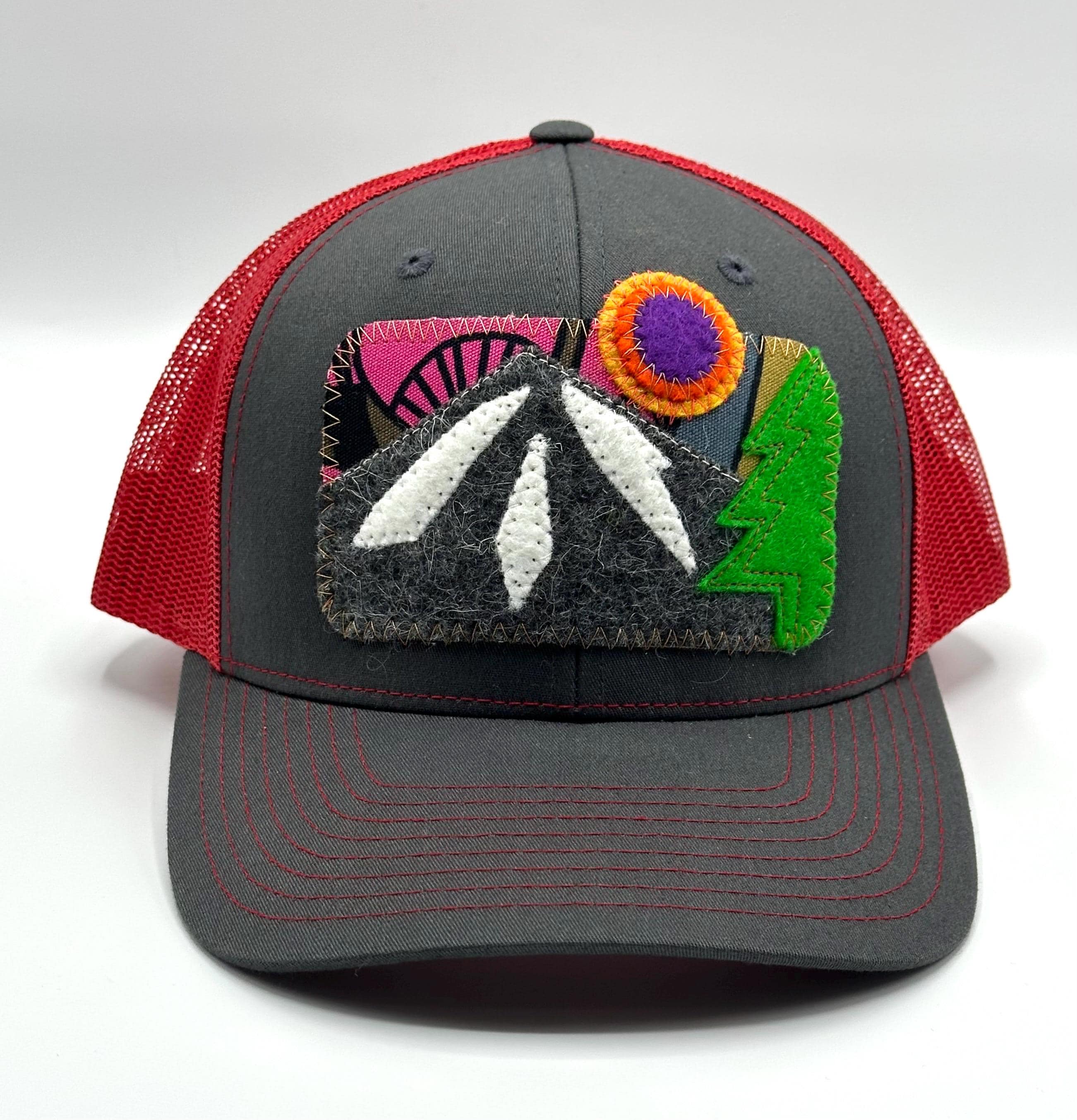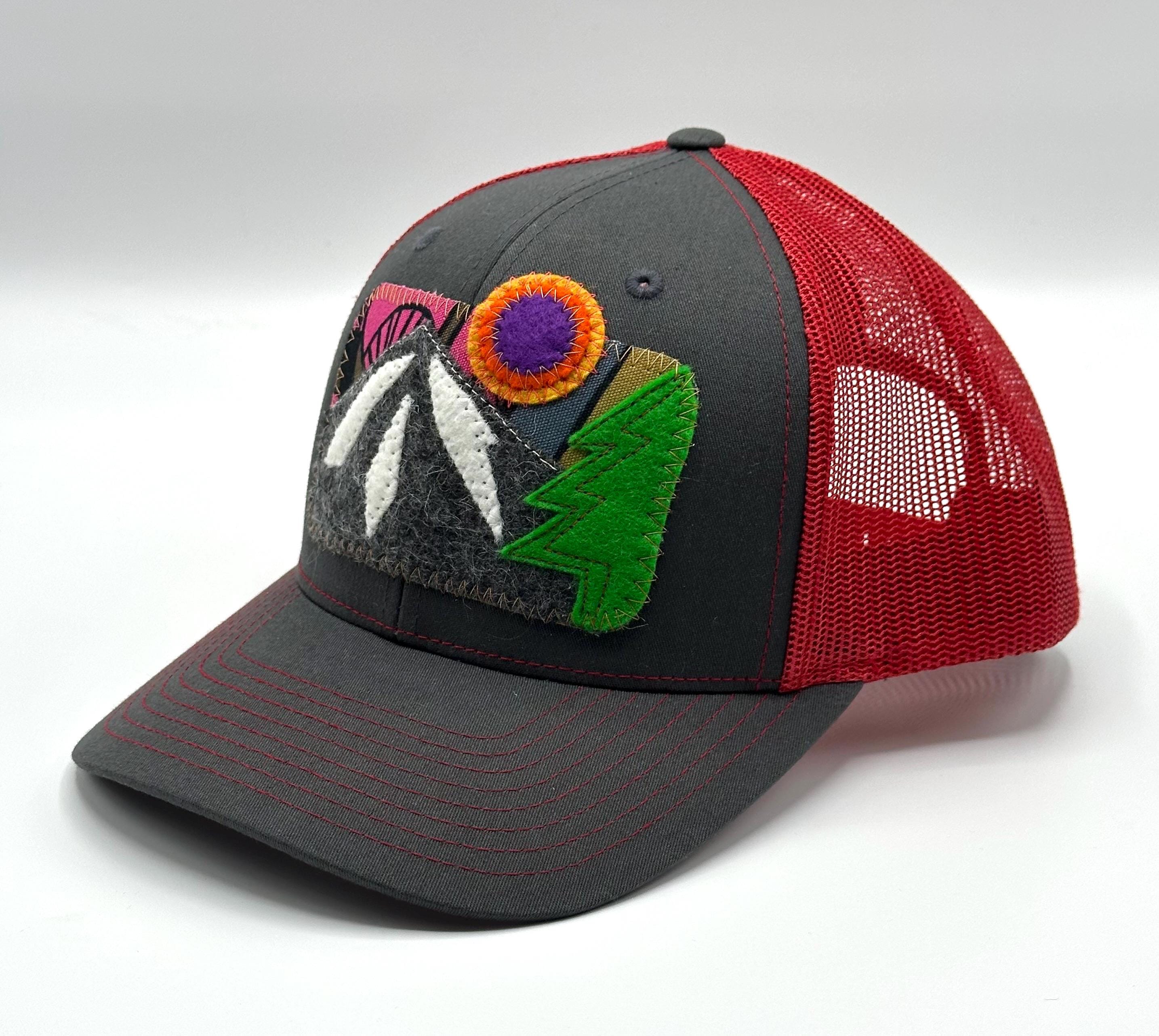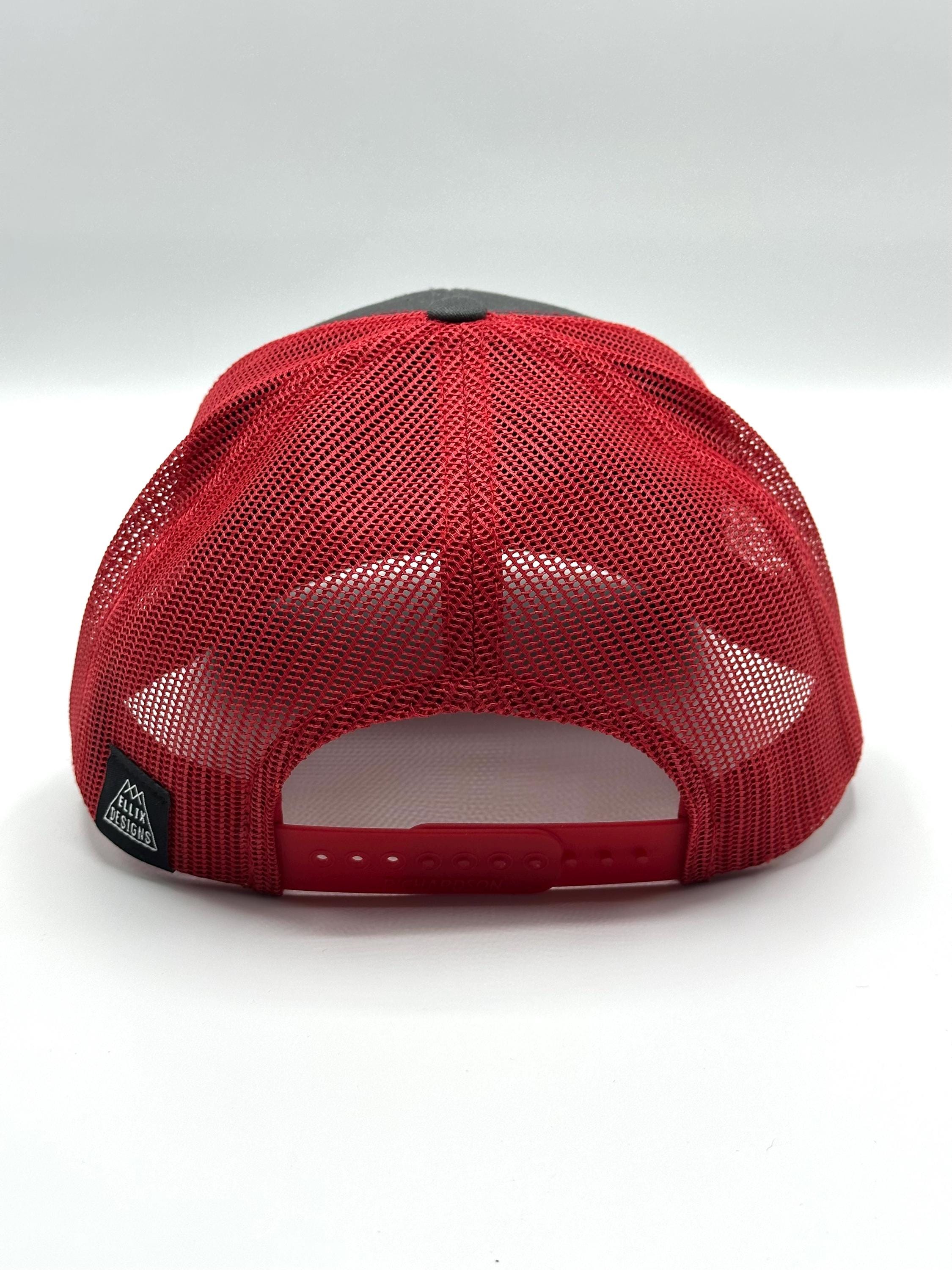 Ellix hats are a great way to look stylish while shading your face & protecting your head - from the mountain sun, the festival flare or the urban glow. Trucker hats are all-season apparel here in the mountains of Bend, Oregon - perfect for men and women, and this red and gray Richardson cotton front hat has a one-size-fits-most adjustable snapback.