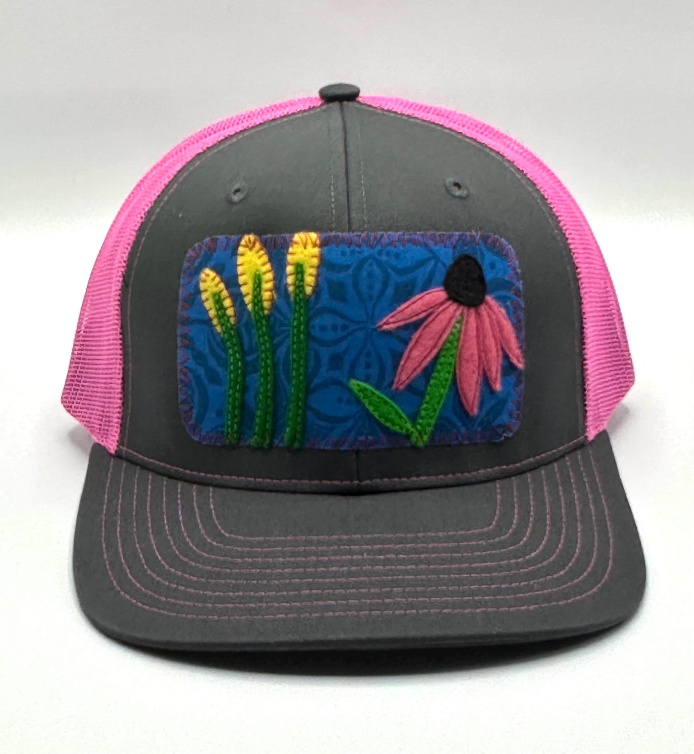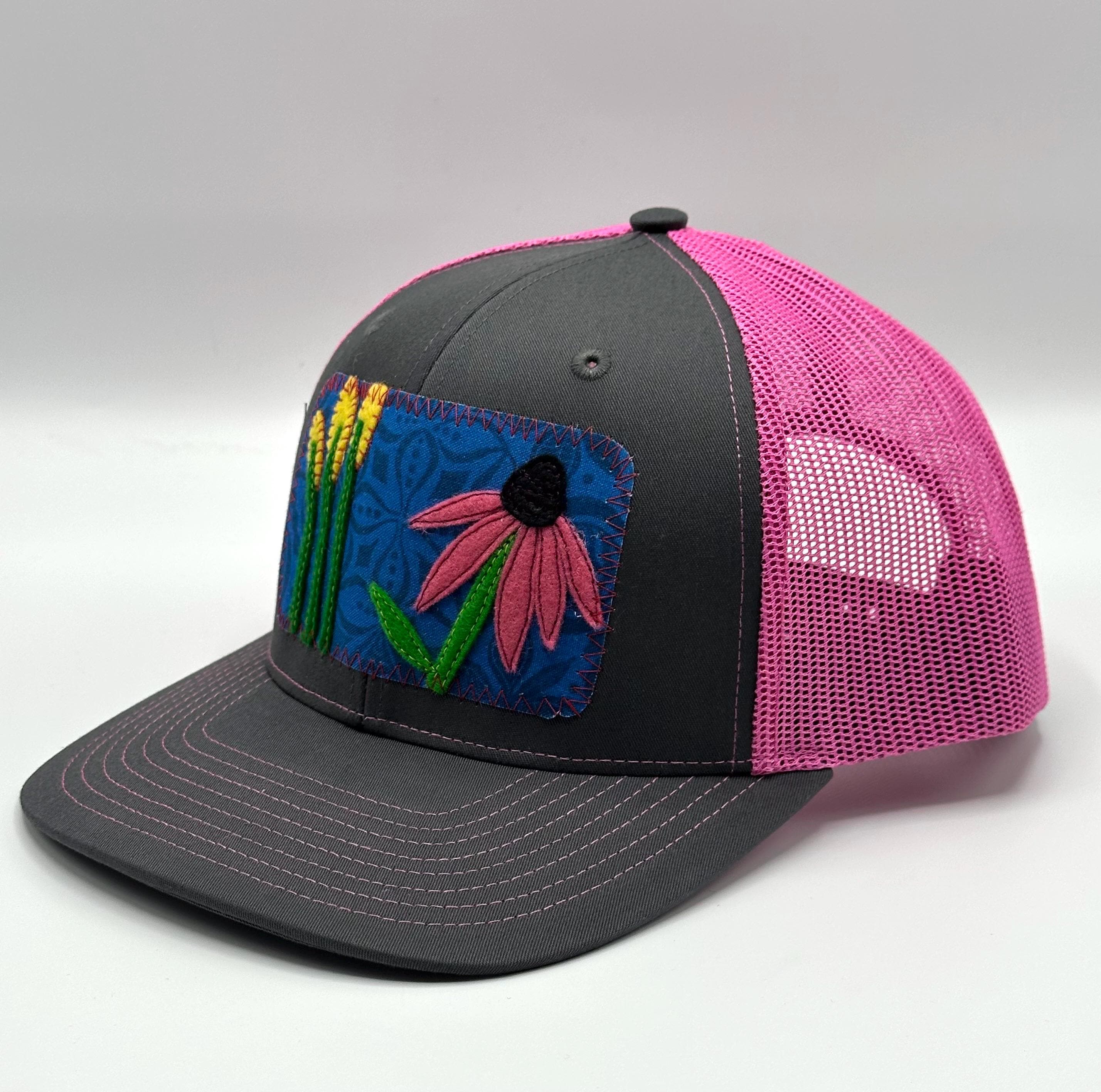 Ellix hats are a great way to look stylish while shading your face & protecting your head - from the mountain sun, the festival flare or the urban glow. Trucker hats are all-season apparel here in the mountains of Bend, Oregon - perfect for men and women, and this pink and gray Richardson cotton front hat has a one-size-fits-most adjustable snapback.