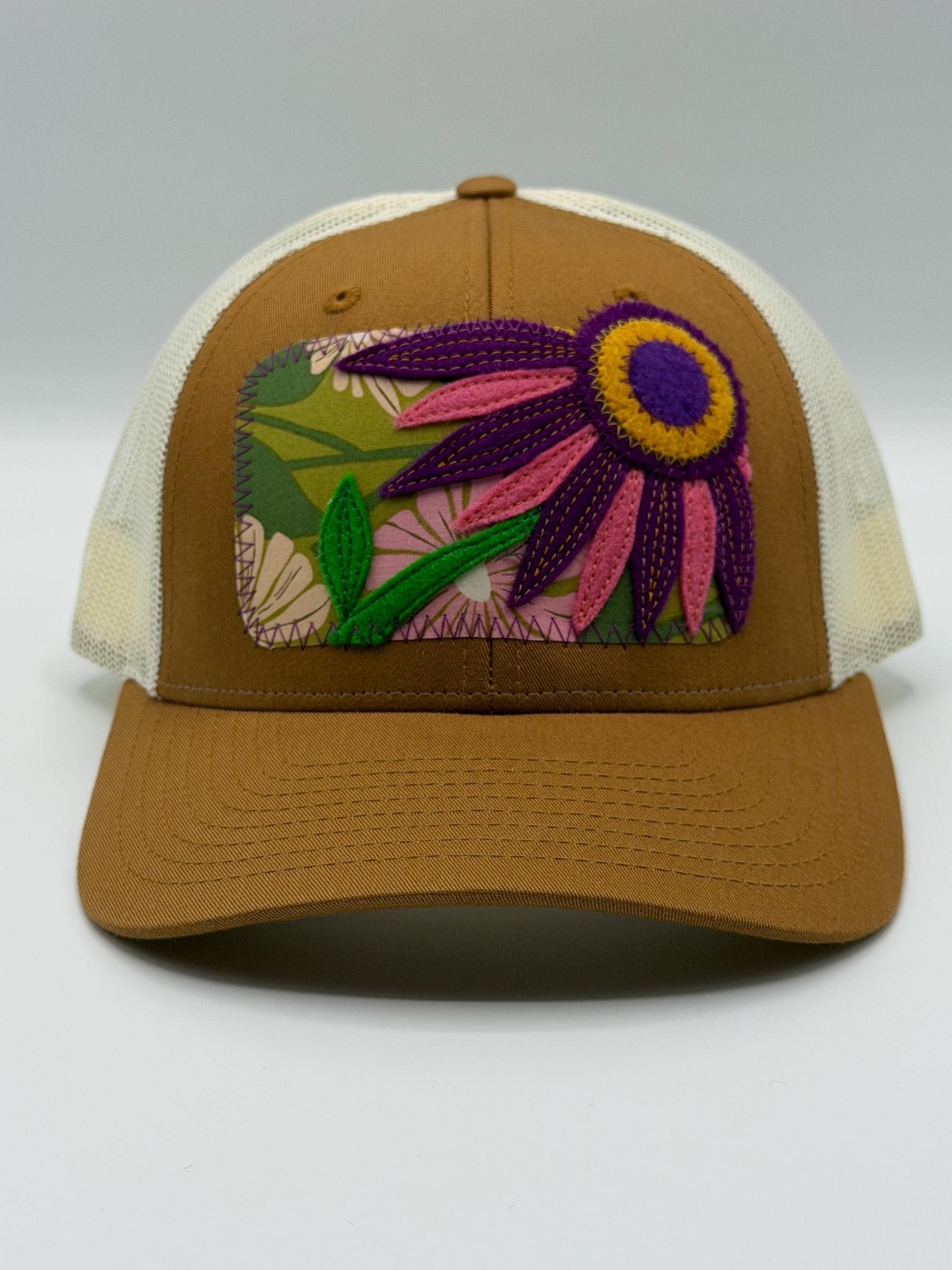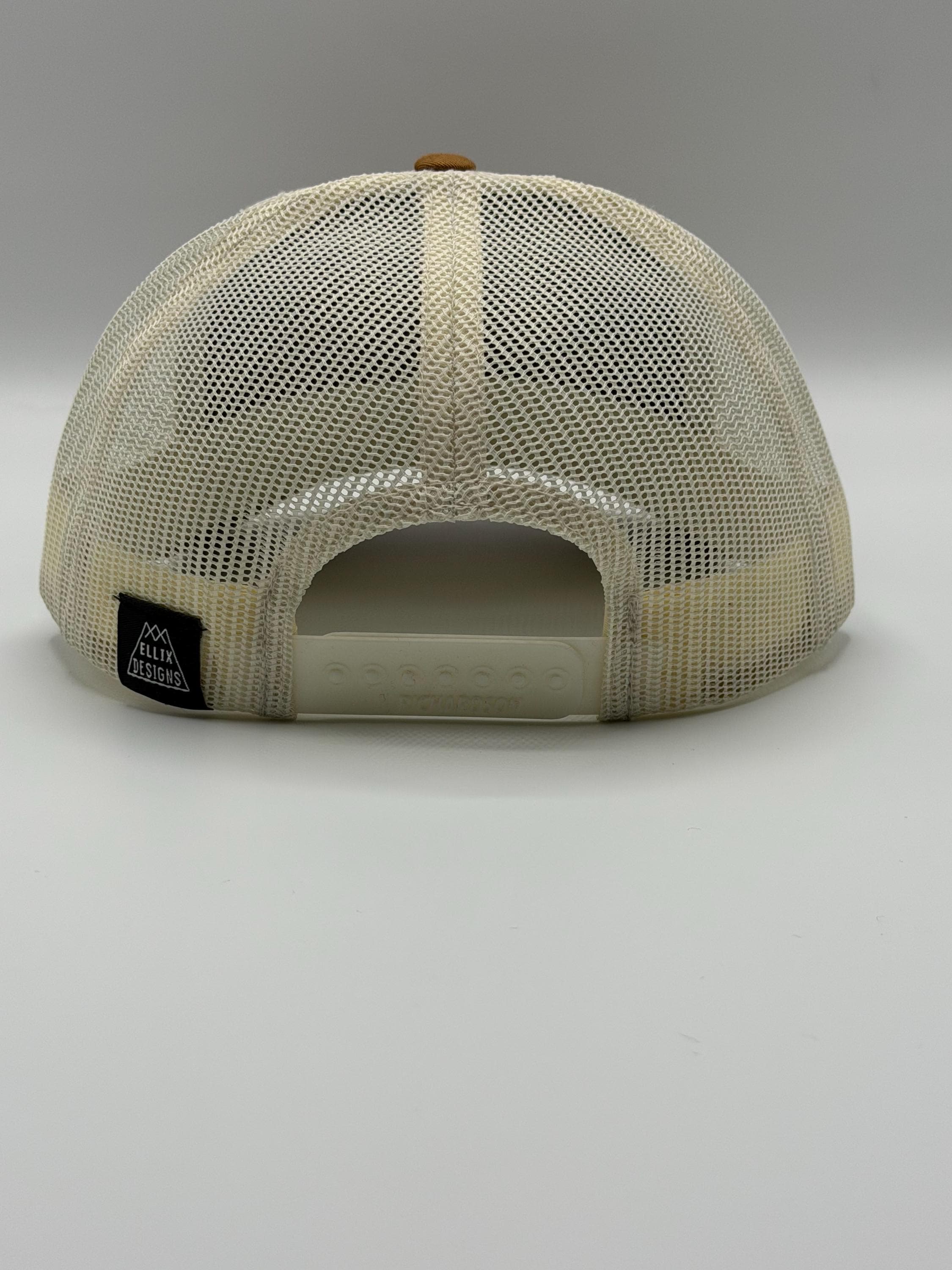 Ellix hats are a great way to look stylish while shading your face & protecting your head - from the mountain sun, the festival flare or the urban glow. Trucker hats are all-season apparel here in the mountains of Bend, Oregon - perfect for men and women, and this light brown and white Richardson cotton front hat has a one-size-fits-most adjustable snapback.
